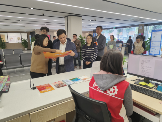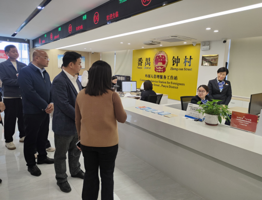 随后,调研组又前往祈福新邨便民服务中心,在中心副主任李影梅的带领下,参观了人工服务办事大厅和24小时智慧政务大厅。人工服务办事大厅设有外国人服务专窗,金融服务咨询专窗,广州工联会专窗和6个综合受理窗口,业务囊括社保、医保等276项事项,为大湾区的企业和居民群众提供一站式的便捷服务。自中心成立以来,极大地满足了居民的办事需求,实现了更多关联性强、办事需求量大的跨部门、跨层级、国际化政务服务事项的办理。